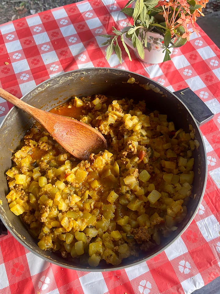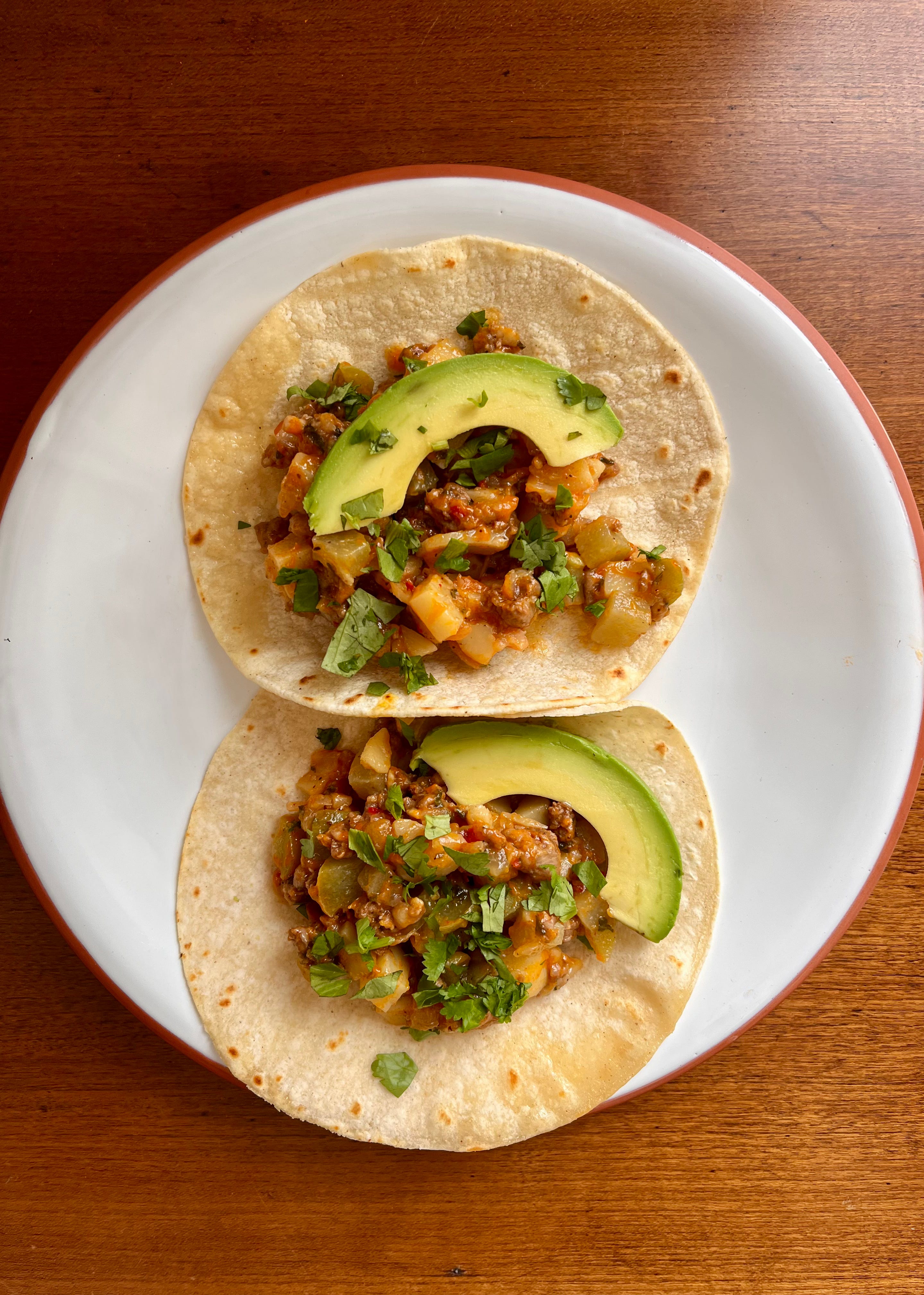 Growing up, whenever my grandparents came over to our house for Sunday lunch, my grandma always brought a tray of picadillo. While she hasn’t been able to cook picadillo for a while, I will always remember the taste of her picadillo. I loved the seasoned ground beef blended with achiote paste, balanced with the soft, yet fresh taste of chayote and warm potatoes.